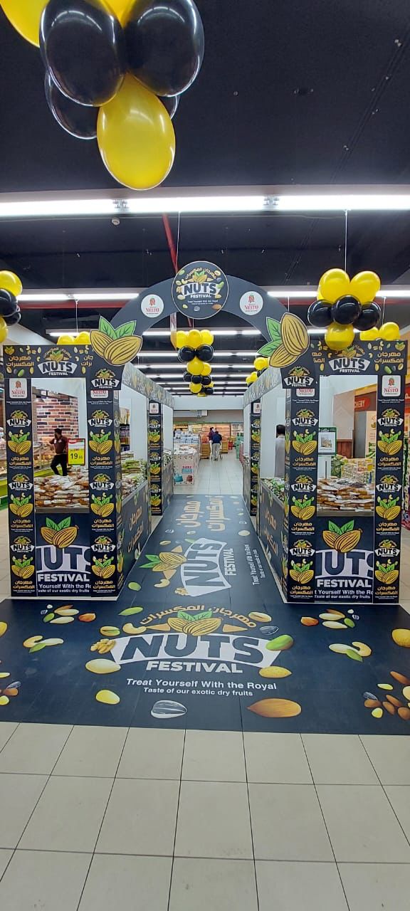 In preparation for the highly anticipated Nuts Festival at the hypermarket, we have gone above and beyond to create an engaging and vibrant shopping experience for our customers. Branded stalls featuring eye-catching graphics of assorted nuts have been thoughtfully designed to showcase the wide variety of premium nut products available during the festival.